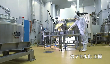 滋賀工廠製造醫藥品、膳食補充品與食品,具備符合 GMP(※1)的製造環境。因此,在此生產的 Bifina® 益生菌等產品,雖屬食品,卻可說是比照醫藥品的高標準進行製造與品質管理。 無縫膠囊的製造流程包含從原料進場到膠囊成形、乾燥等多道工序,每道工序皆徹底實施生產線的衛生管理。製造設備在每次生產結束後都會完全拆解,逐一清洗零件,並以 121℃ 高壓蒸氣滅菌後再重新組裝。 在食品品質管理方面,亦依循 GMP 規範,由包含藥師在內的專業人員進行嚴格控管。從原料檢測到成品膠囊的品質試驗與檢查,皆依照《日本藥局方》及 GMP 標準方法進行。